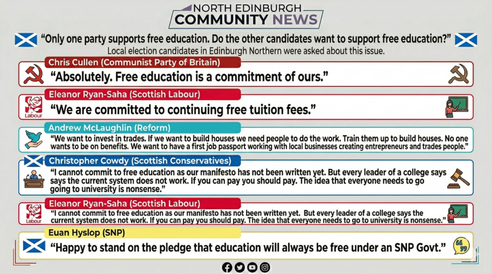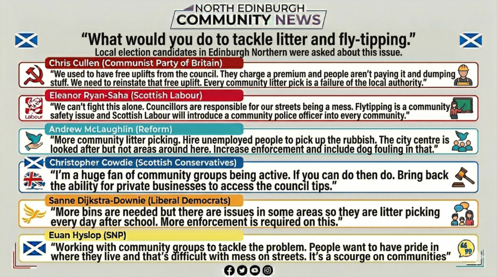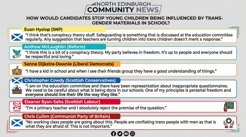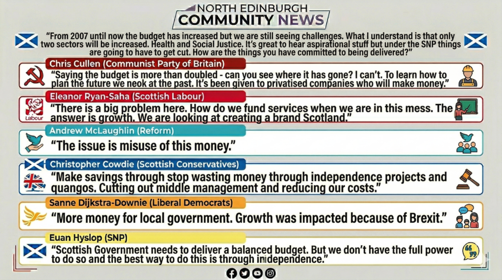 Another resident sought support for further education funding, which all candidates pledged to back. Candidates were also asked if politicians who deliberately “lie” should face criminal prosecution, alongside questions regarding immigration, independence, and fly-tipping.